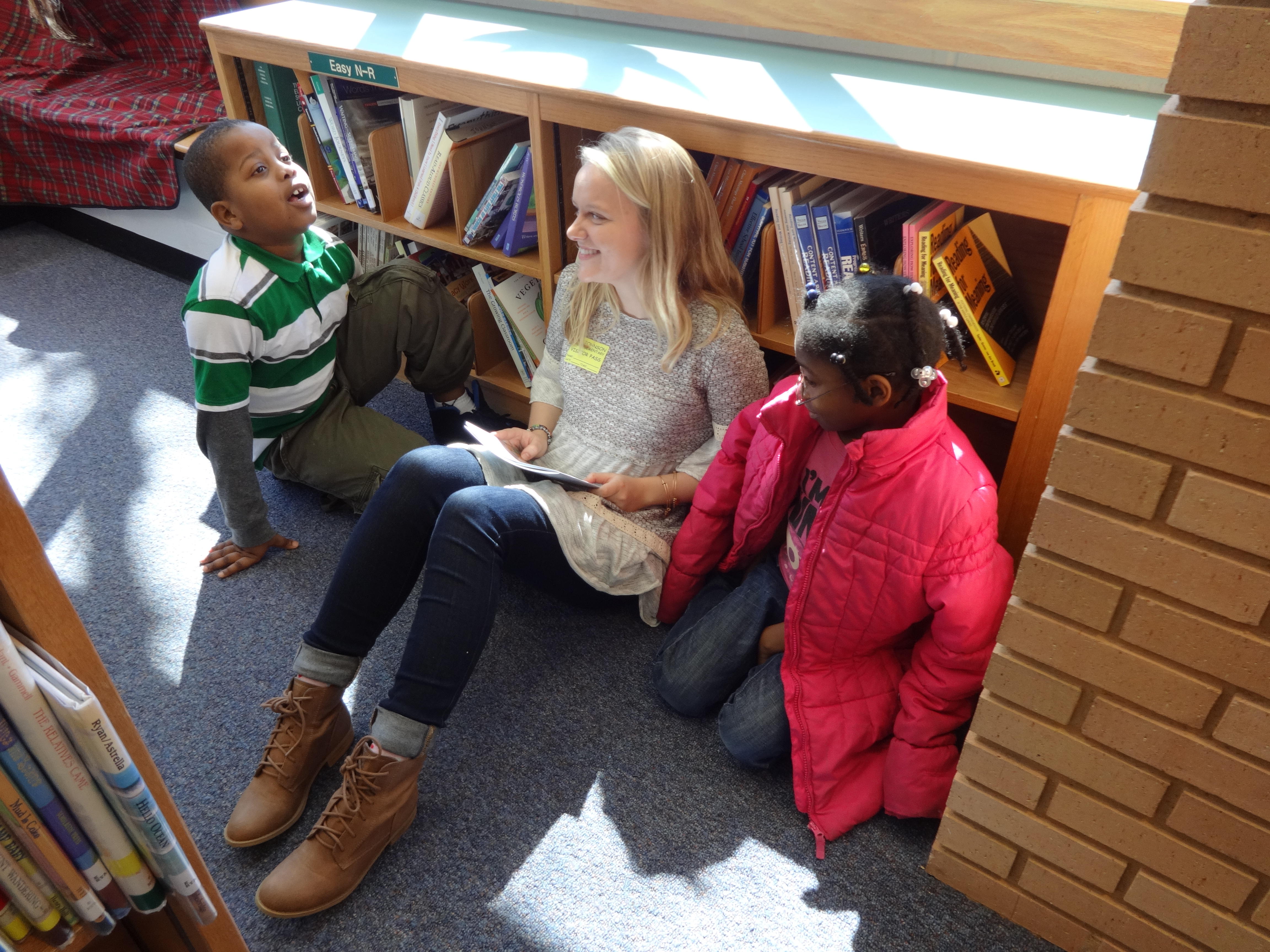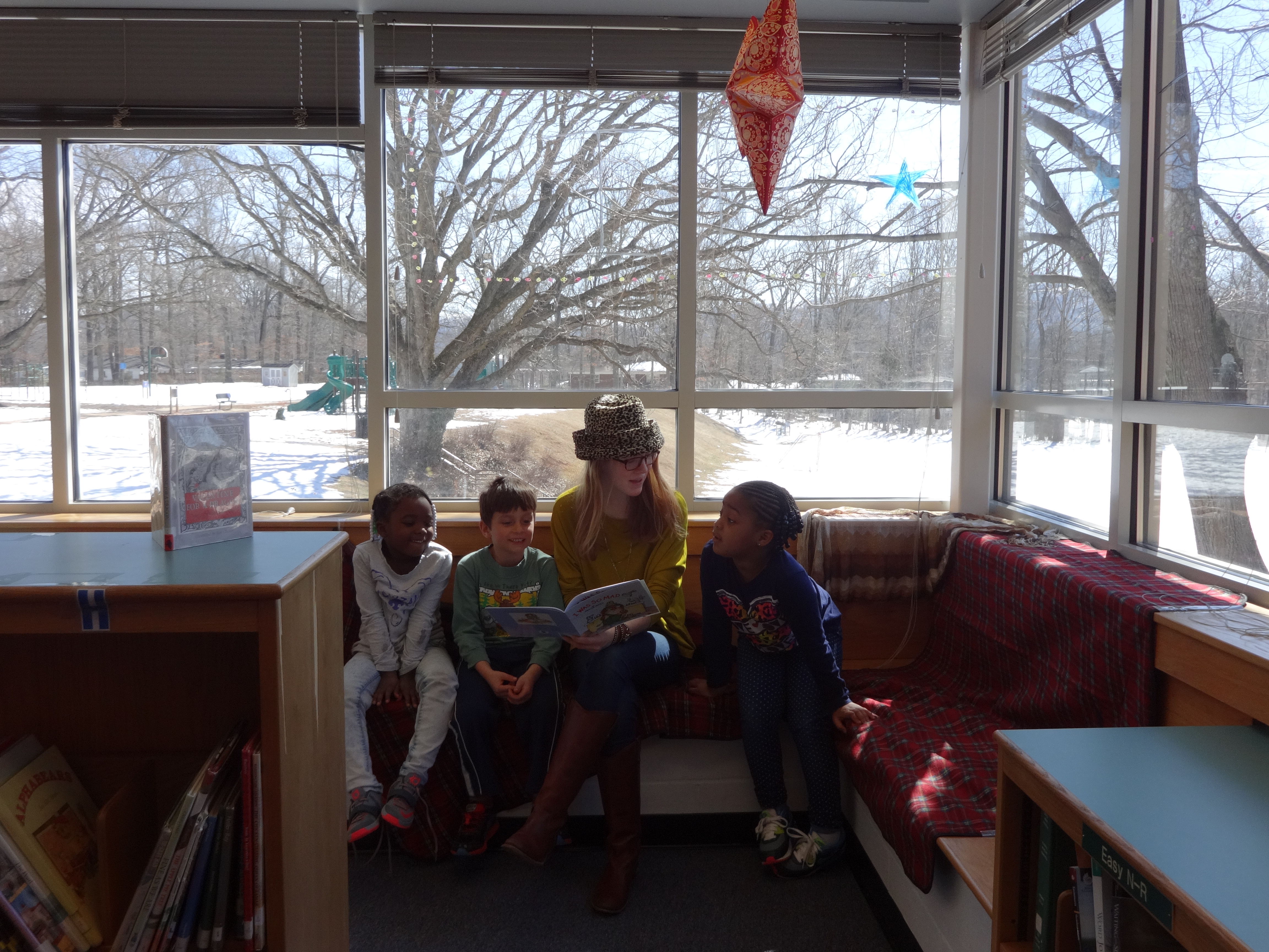 At Johnson, we love visitors. Young and old, teaching reading or chess, playing or working… we love having new friends join the Johnson community. So we were extra excited to spend our first day of Read Across America week with some of our favorite visitors – the ladies from the University Virginia chapter of Pi Beta Phi. You might remember this wonderful service sorority from last year, when they came to share stories with our third graders and give away books on a beautiful spring afternoon. I am so happy that Pi Beta Phi reached out to us again this year to spend Read Across America together. And, as you’ll see from the pictures below, our students weren’t too!
