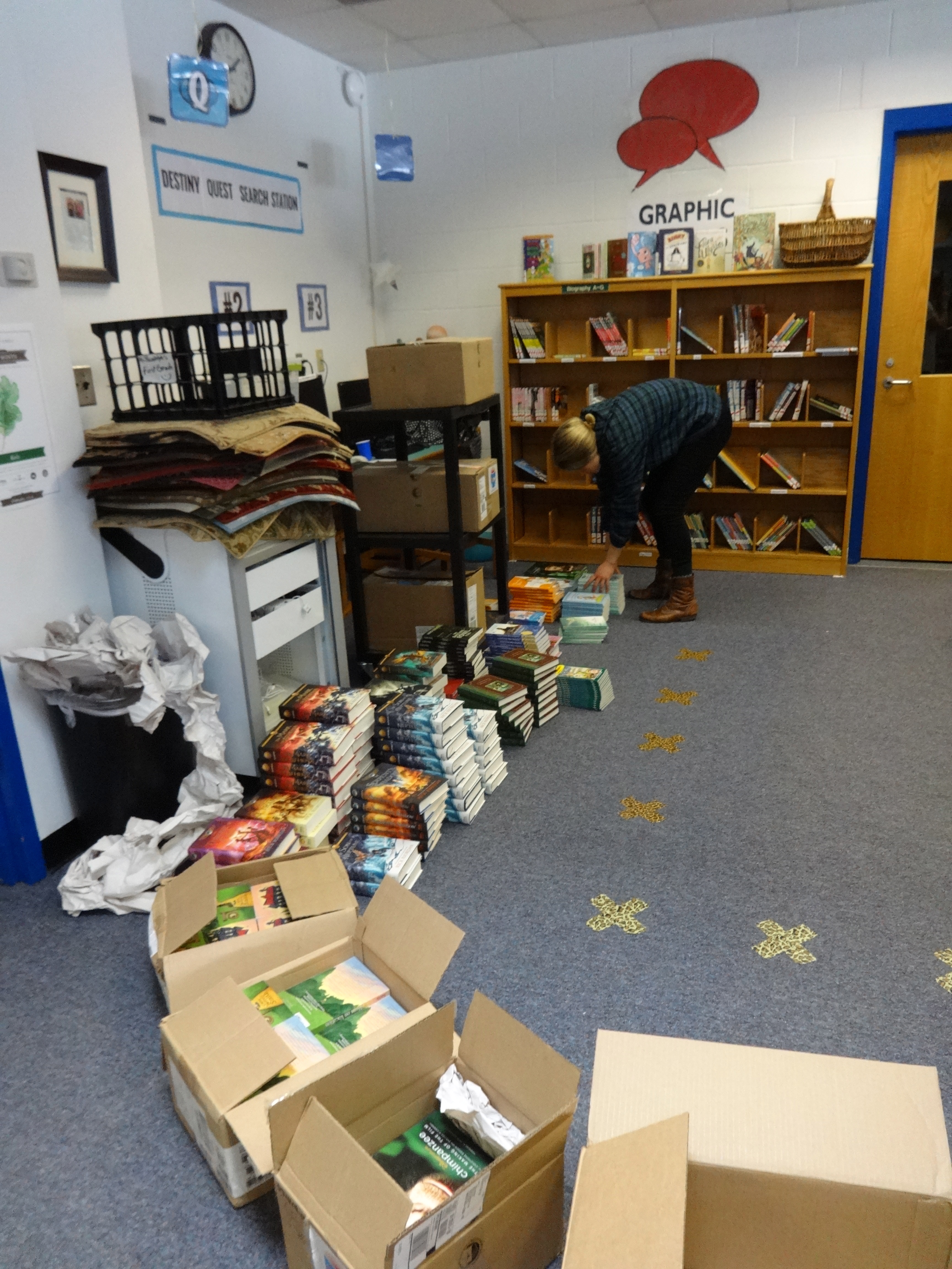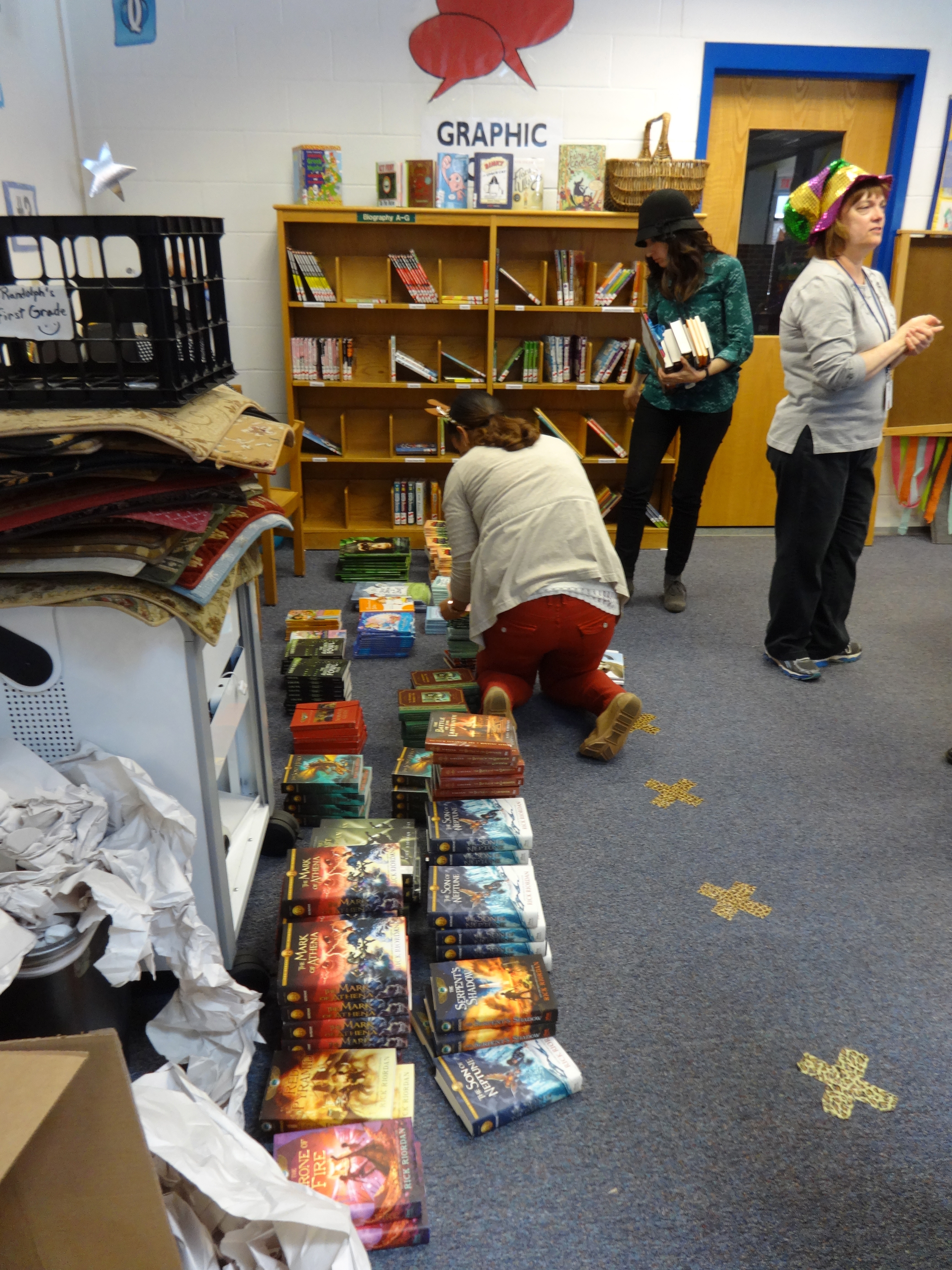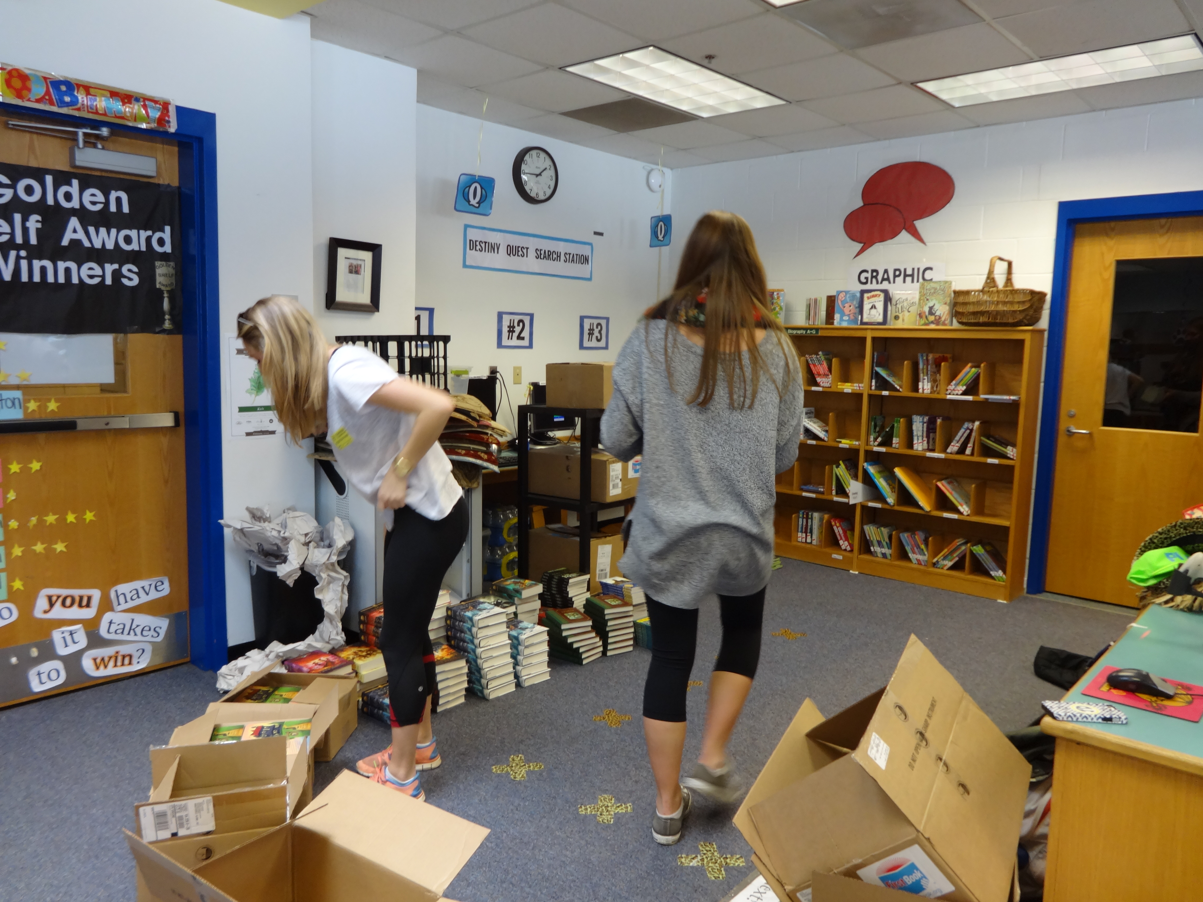 Your eyes are not deceiving you, there are TWO zeroes after that five. FIVE HUNDRED FREE BOOKS! It took more than five members of the Johnson family AND five volunteers to lift, unpack, and organize all of those books. Once they were unpacked, teachers were invited into the library to “shop” for their students. Teachers were thrilled to be choosing from such a wonderful selection, and took time and consideration to find a book for each student that would be truly enjoyed. Each student will receive one free book to take home and keep, thanks to the generosity of our friends at Pi Beta Phi.