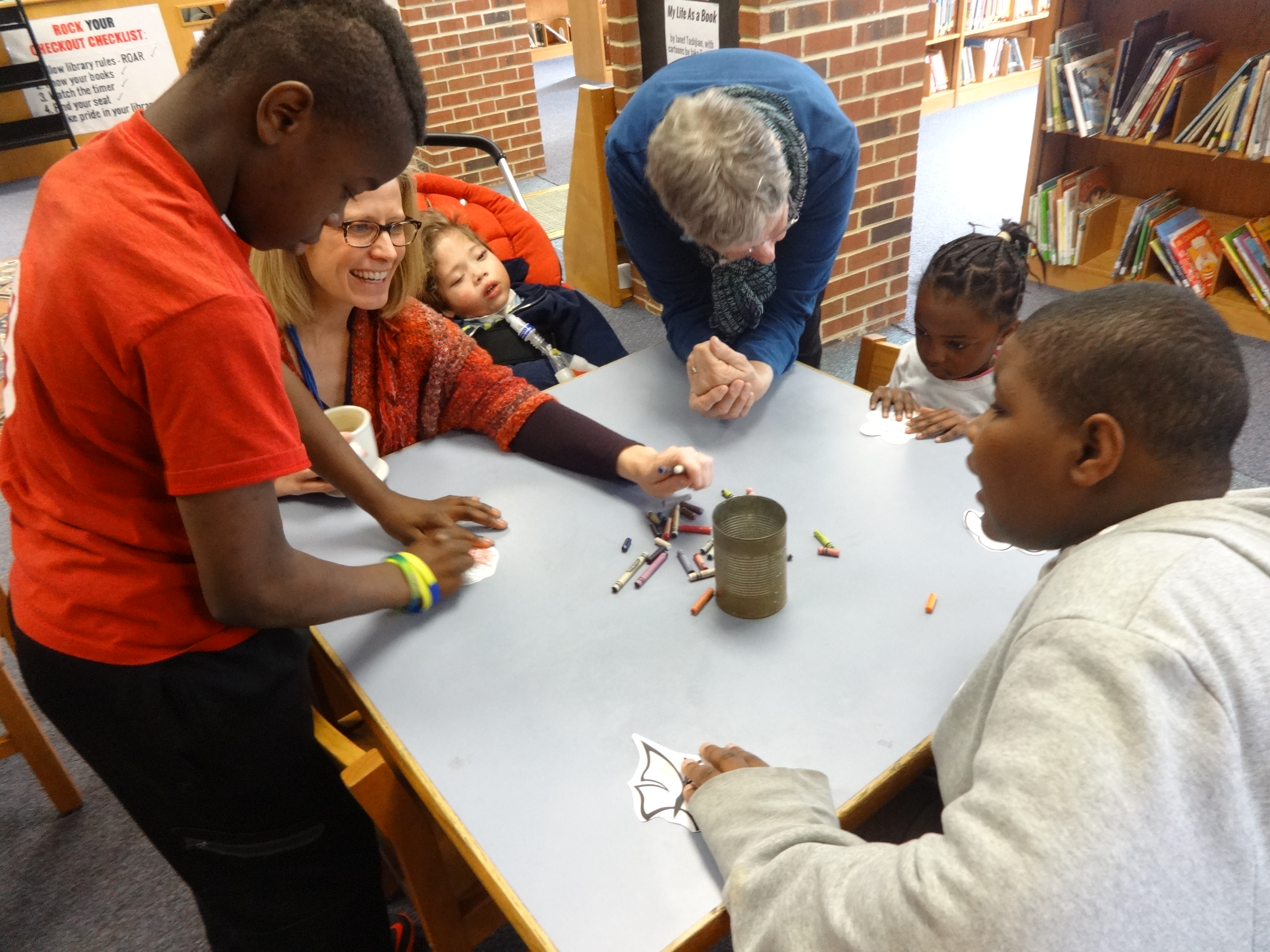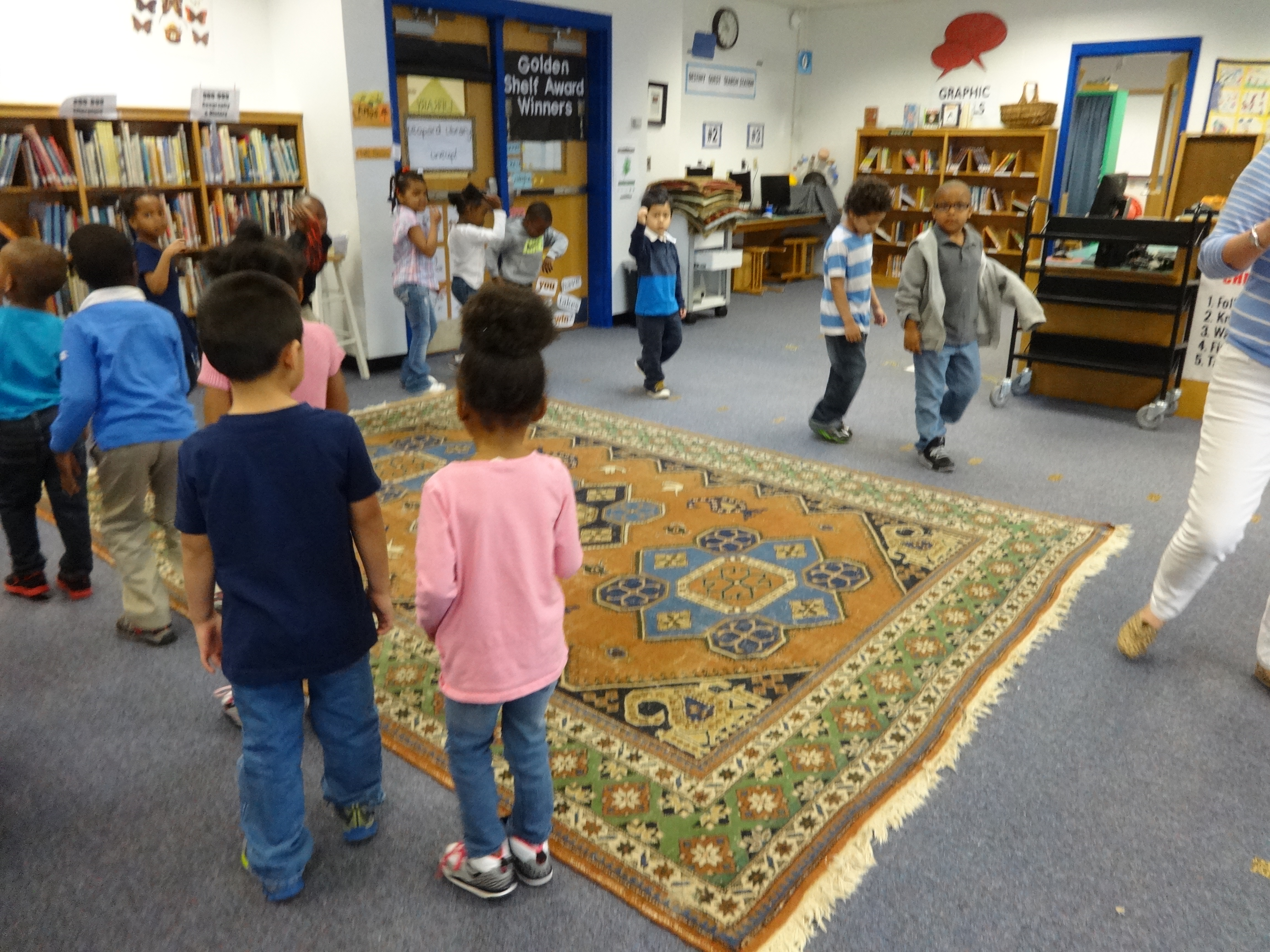 Pre-school students sing, march, dance, craft, and play in the library. Learning through song and play is the way we spend our mornings around here! Look closer to see some dedicated fourth grade helpers lending a hand to the lucky students in the Early Childhood Special Education program.