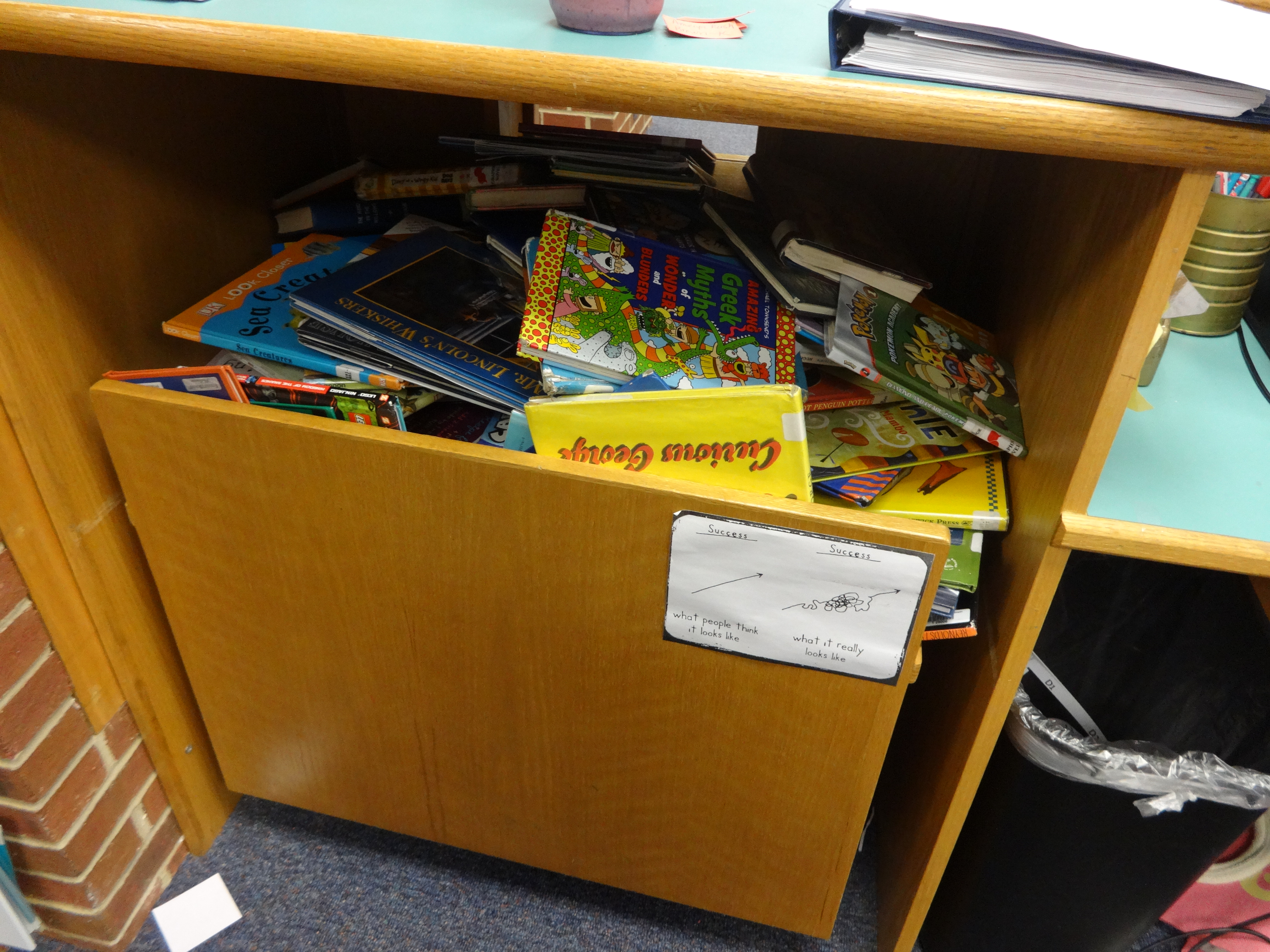 Have you ever wondered what it looks like when 300 students return their library books on the same day? Every Thursday, I check in and shelve between 300 and 500 books, just for them to go back out before the end of the day. It’s an exhausting and rewarding process! Above is a snapshot of what my book return cart looked like at about 8:20 this morning.