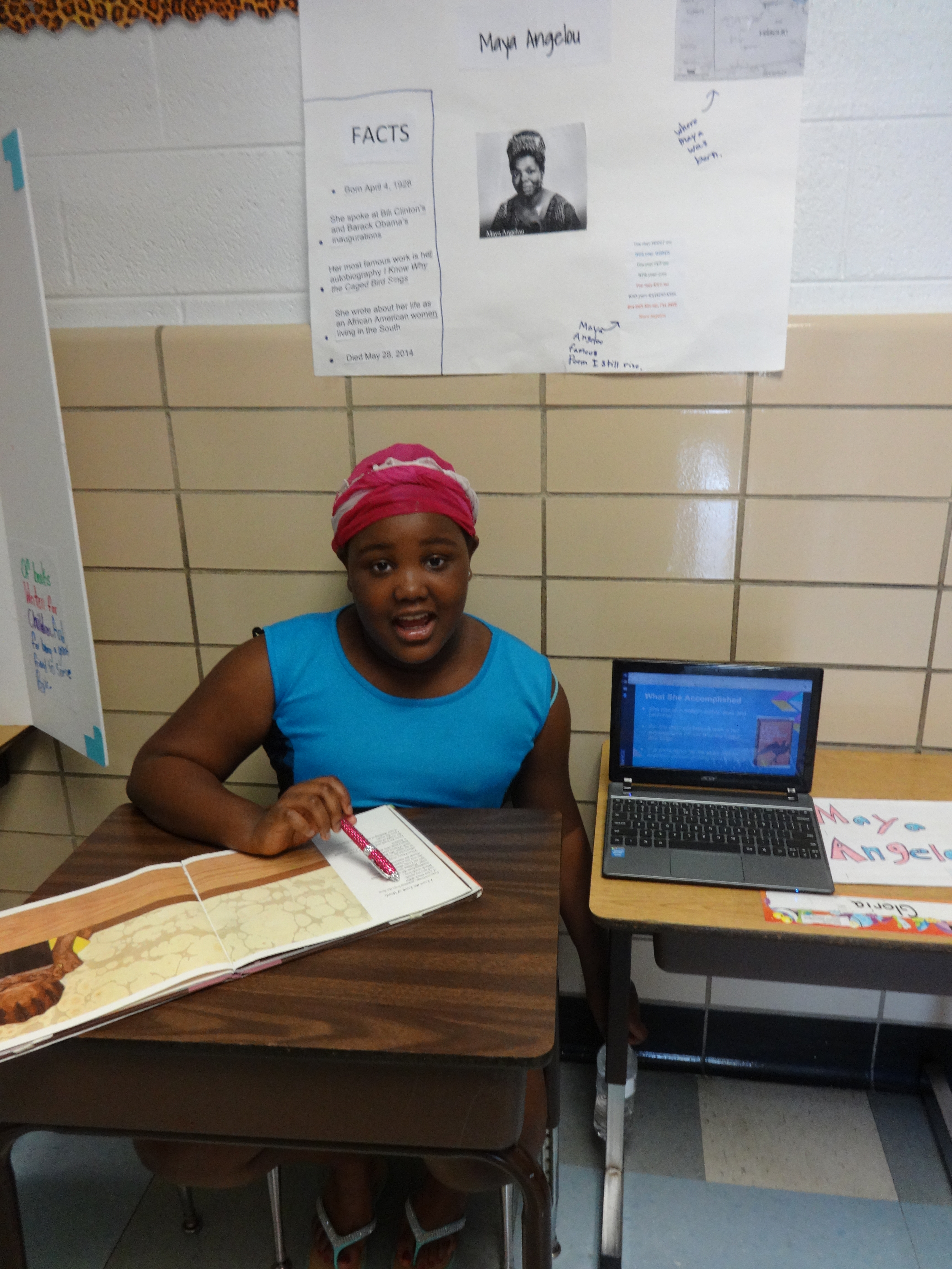 Through a memorized monologue, each famous American taught their audiences about their life, their accomplishments and hardships, and the reasons that they left a permanent mark on the world. On the wall behind them hung a poster, which went along with the carefully created digital slideshows displayed on a desk. The graphic novels created in library class sat next to the laptops, giving big and little hands alike something to flip through and enjoy while they listened. As I walked up and down the halls stomping on big red buttons, I laughed, I learned, and I even teared up a little.