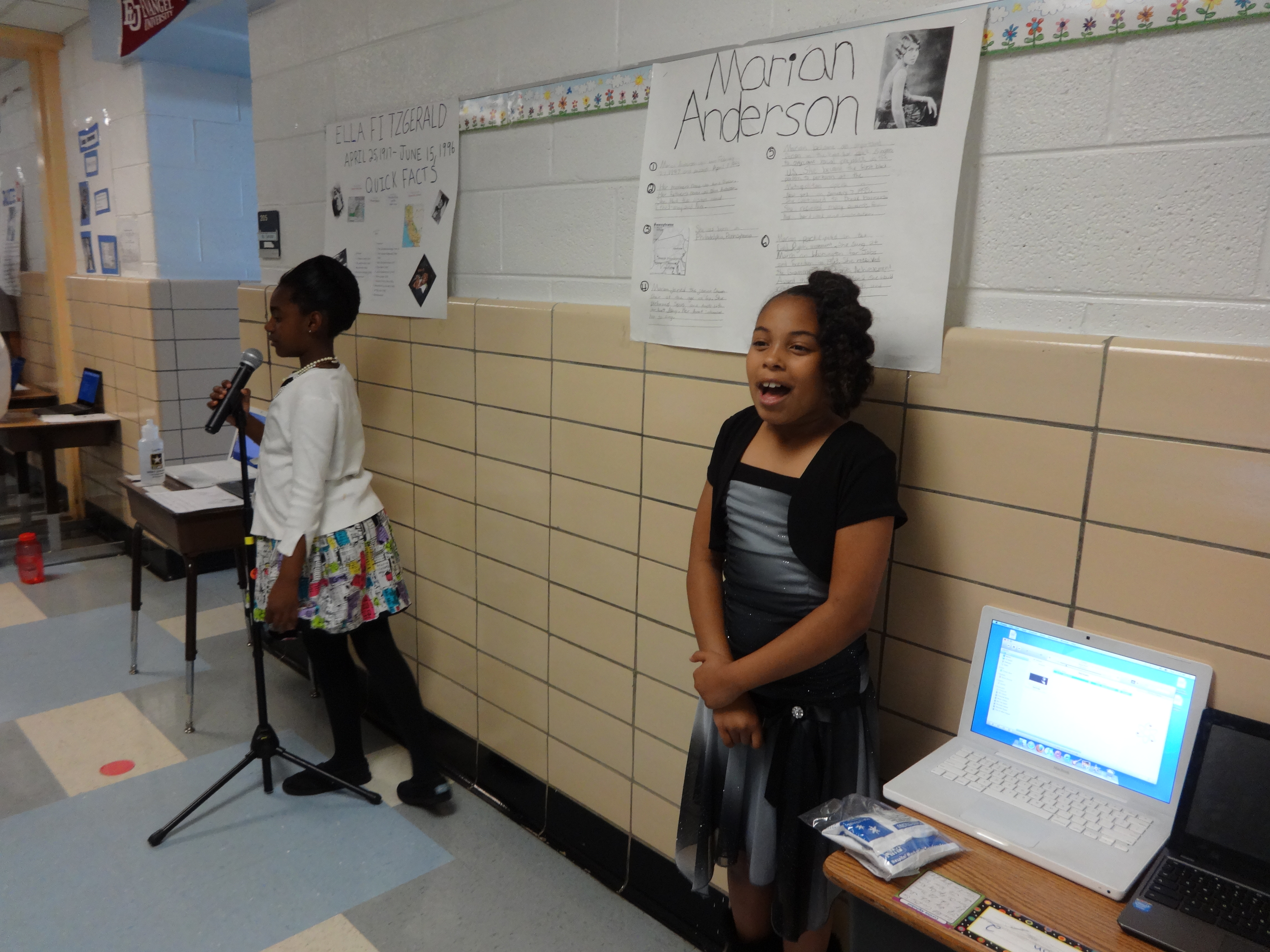 And I wasn’t the only one impressed with Johnson’s mini-famous Americans. Books about the historical figures represented at today’s Famous American Living Museum have been flying off the biography shelves. Fourth graders must have made an especially strong impact on our kindergarten and first grade readers, who clamored to check out books to learn more about people like Ella FitzGerald, Martin Luther King, Jr., Rosa Parks, and Eleanor Roosevelt.