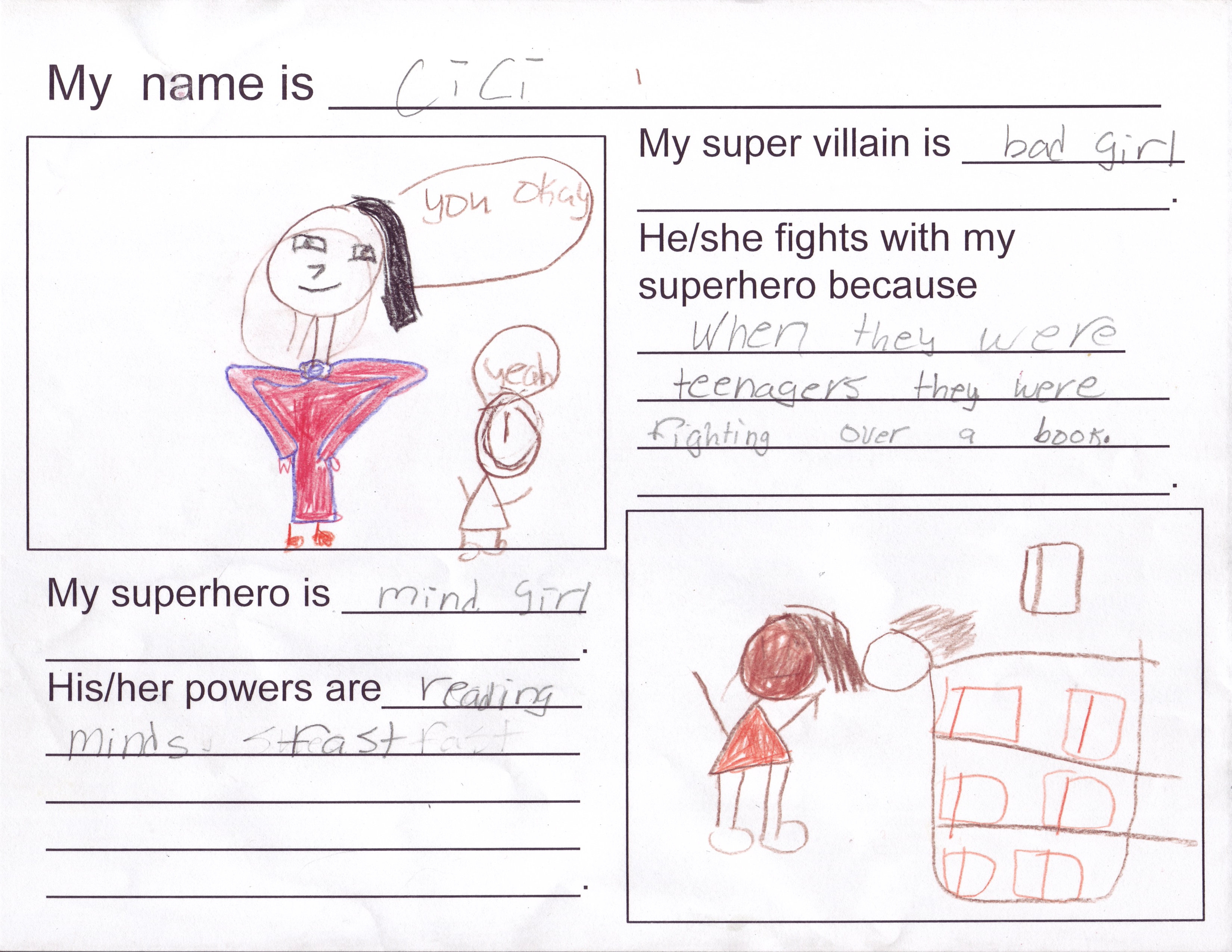Below, please enjoy a few samples of second grade students’ work on their super hero graphic novel projects.