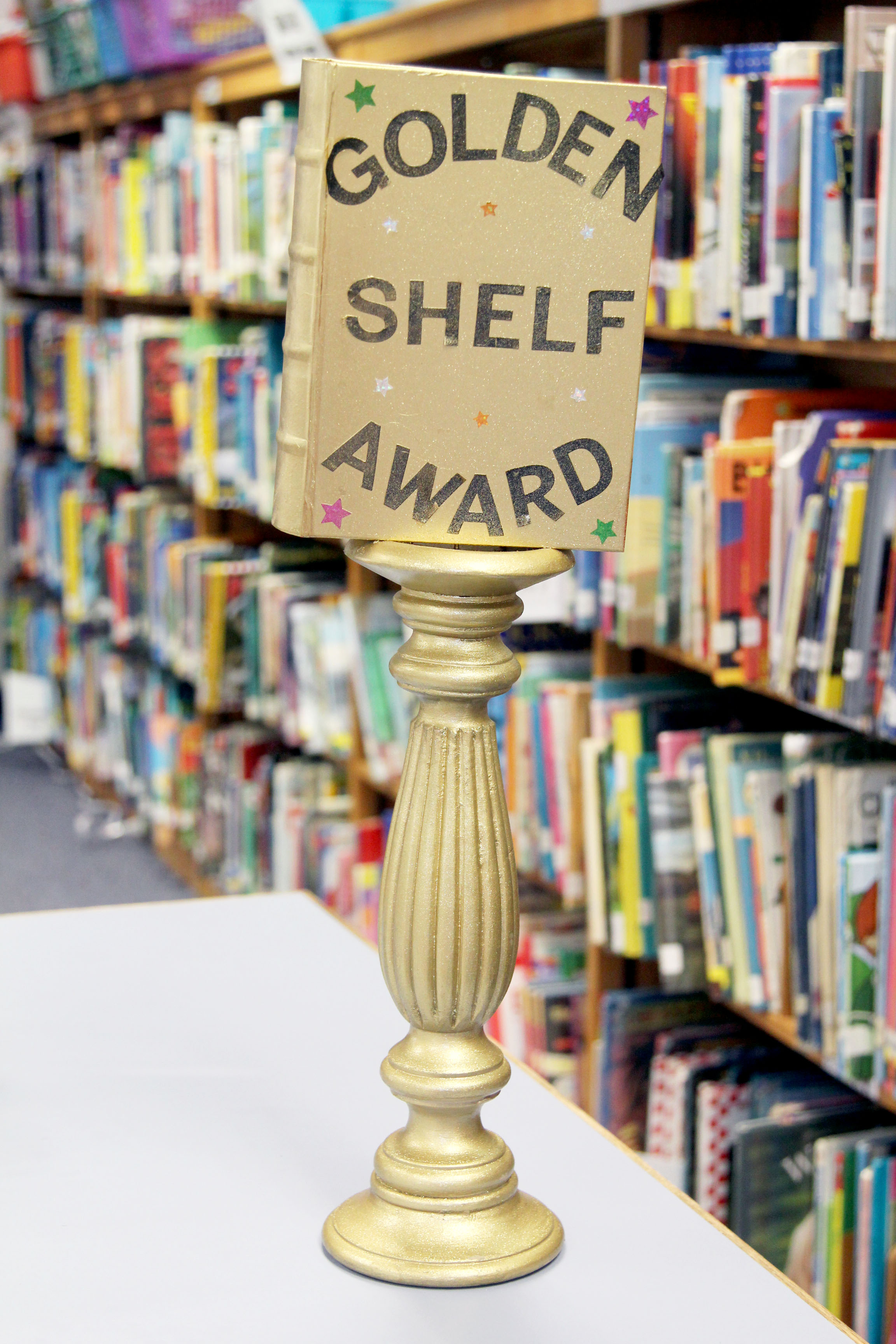 The Golden Shelf Award is a weekly award presented by me to the second, third, or fourth grade class that impresses me the most during their library and checkout times. Every Monday morning, the school holds its breath as Mr. Stern announces, “Congratulations to this week’s Golden Shelf Winners….” I don’t mean to brag, but the cheers can normally be heard down the hall. This award is kind of a big deal.
