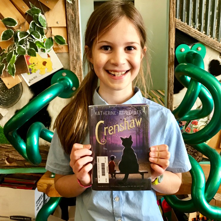 Crenshaw, by Katherine Applegate I gave this book five stars because it is about a boy who doesn’t believe in magic anymore. But one day he found his imaginary cat named “Crenshaw” and soon there are adventures with happiness, hesitation and lots of hairballs! Once you’re done reading it… you’ll be meowing for more!